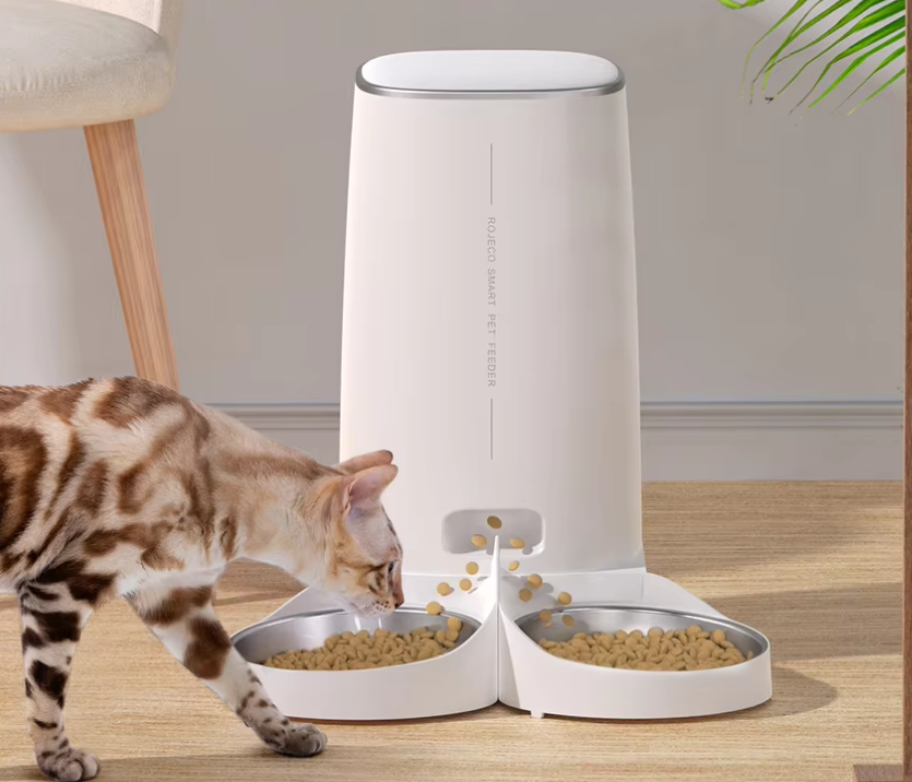 ROJECO Automatic Cat Feeder Pet Smart Cat Food Kibble Dispenser Remote Control Auto WiFi Double Feeder For Cats Dog Accessories