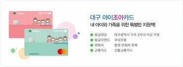 대구 아이조아카드는 대구시에 거주하는 다자녀 가정에게 경제적, 문화적 혜택을 제공하기 위해 운영되는 카드입니다.